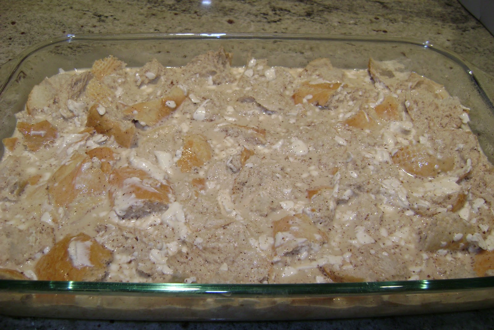 Pour this mixture over the bread and stick it in the fridge overnight. It looked quite disgusting.